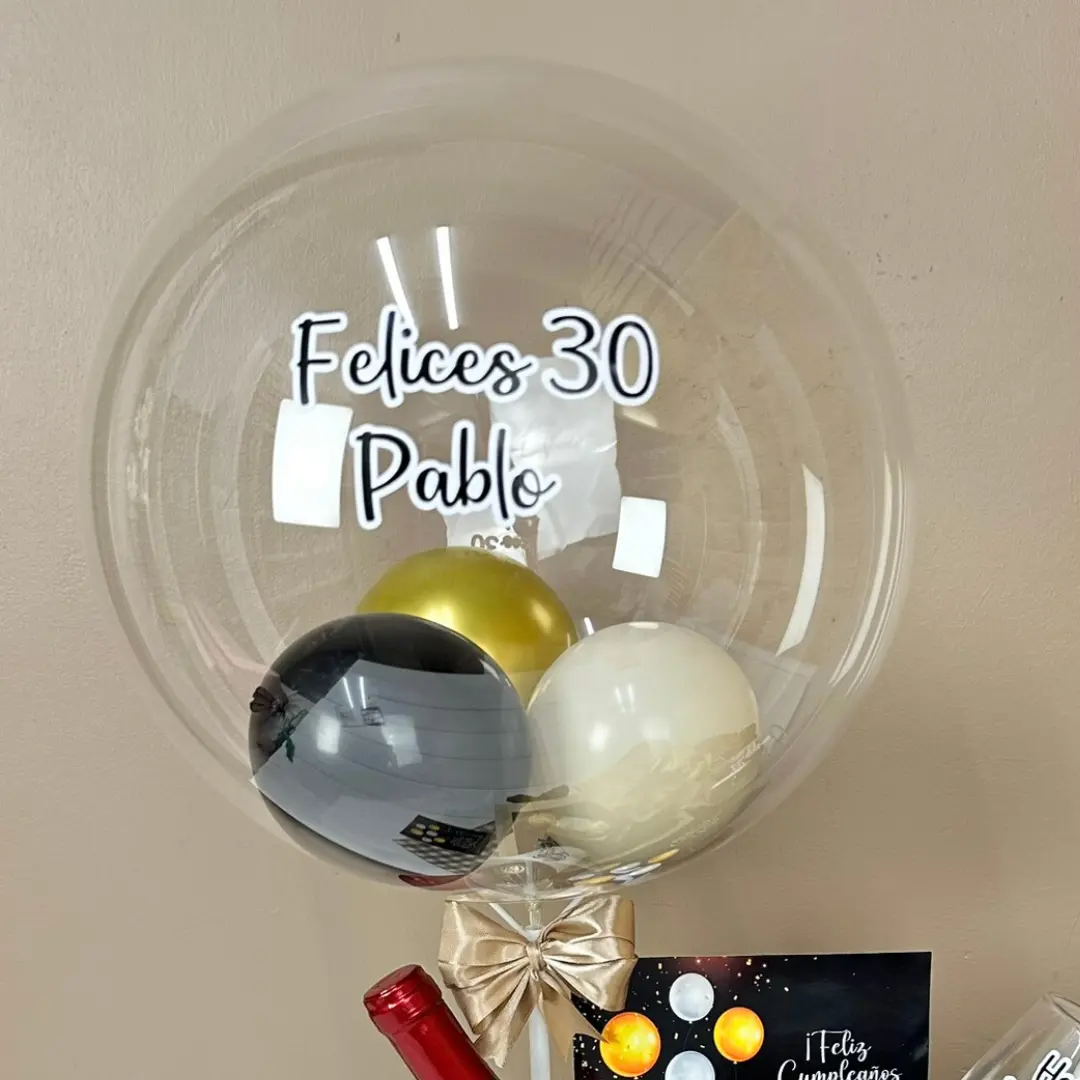 Agregale a tus desayunos un globo con frase personalizada. El color del globo sera según la temática elegida.